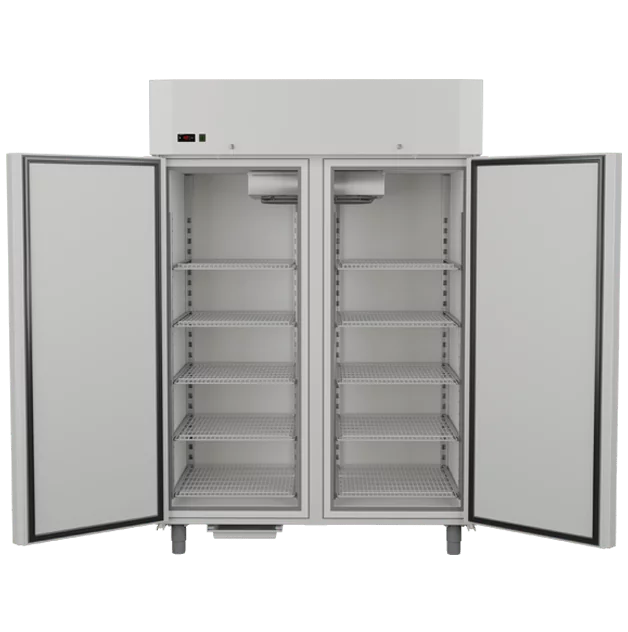 Універсальна шафа SD140M — професійне холодильне обладнання, що найкраще підходить для виробничих кухонь/кулінарій, складських приміщень, магазинів та закладів громадського харчування. Містка та зручна в експлуатації. Найкращий вибір, коли йдеться про суто якісне зберігання продуктів. Великий об’єм двохдверної шафи допоможе зберігати велику кількість продуктів одночасно! Вона також комплектується електронним блоком керування, що контролює заданий температурний режим та функцію автоматичного відтавання. Внутрішня частина шафи виготовлена з металу з полімерним покриттям, а корпус залитий пінополіуретаном високої міцності, що гарантує відмінну термоізоляцію, герметичність, жорсткість та міцність конструкції. Шафа комплектується 10 великими полицями та 5 вузькими міжполичними рівнями з можливістю регулювання, а також ніжками з налаштуванням висоти для зручного встановлення обладнання..